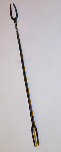 Tige de section circulaire, terminée à chaque extrémité par une fourche à deux dents.