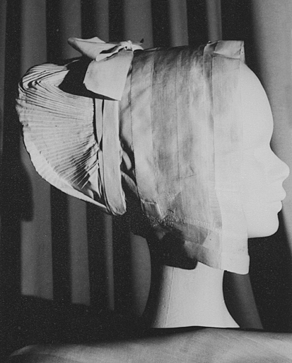 ينتمي هذا العمل إلى المجال: costume - accessoires du costume, ethnologie. تم إنجازه باستخدام المواد والتقنيات التالية: ruban, plissé, jaconas, percale, papier, coton. تم تحديد فترة إنشائه على أنها: التاسع عشر قرن.