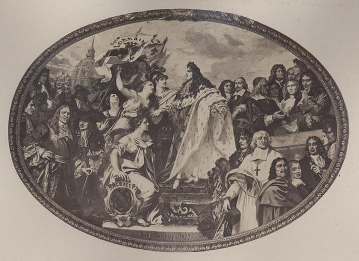 MICHELEZ G;SIROUY Achille (d'après) achève Louis XIV. Grand Salon du Palais de la légion d'honneur, par Ach. Sirouy.1877 (titre au crayon sur le montage) dans un climat artistique profondément marqué par la 4e quart 19e siècle. Le musée Condé, qui en conserve l'original, perpétue ainsi la mémoire d'un moment essentiel de l'histoire de l'art, où les créateurs ont su répondre aux défis de leur époque avec inventivité et audace.