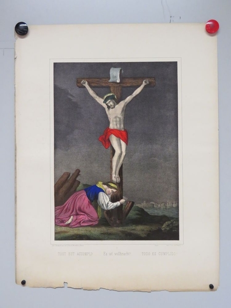 La création de Tout est accompli! (titre inscrit, français, allemand, espagnol) par Burckardt Camille (actif 1880-1888) s'inscrit dans le climat culturel et intellectuel de la 4e quart 19e siècle. Conservée au musée Westercamp, cette œuvre porte en elle les empreintes d'un moment charnière de l'histoire de l'art, où les artistes explorent de nouvelles formes d'expression et repoussent les limites de leur pratique.