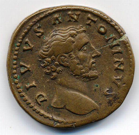 ANTONIN LE PIEUX : Antonin le Pieux : nom latin : Titus Aurelius Fulvus Boionius Arrius Antoninus. Né le 19 Septembre 86 à Lanuvium, près de Rome. Il tire son surnom de ses contemporains qui voit en lui le modèle de vertu de ses ancêtres. Sa famille est originaire de Nîmes en Gaule Narbonnaise, appartenant à la bourgeoisie rurale, elle achète des terres en Italie pour pouvoir rentrer au sénat et s'enrichie. Empereur, Antonin n'oublie pas sa patrie d'origine, il fait reconstruire Narbonne détruite par un incendie et y favorise le réseau routier. Son ascension est très incertaine car peu de sources en font état. Questeur puis préteur, il est consul en 120. Il est l'un des quatre consulaires d'Italie puis occupe la charge de proconsul d'Asie de 133 à 136. Cette carrière discrète est à l'image de son règne serein. Il épouse entre 110 et 115 la nièce de la femme d'Hadrien qui l'adopte et fait de lui son successeur à la condition qu'il prenne sous sa protection le futur Marc-Aurèle. Il devient empereur le 10 Juillet 138 et ne quitte jamais l'Italie. Son règne maintien l'empire à son apogée et la paix. Il est marqué par le calme où rien ne bouge seul l'empire s'enrichit. Le culte chrétien profite de cette paix de l'empire pour faire une percée. Antonin meurt le 7 Mars 161