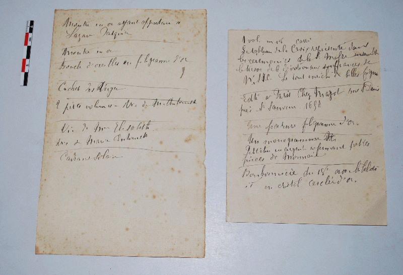 2 listes manuscrites : inventaire de Verger-Tarin.