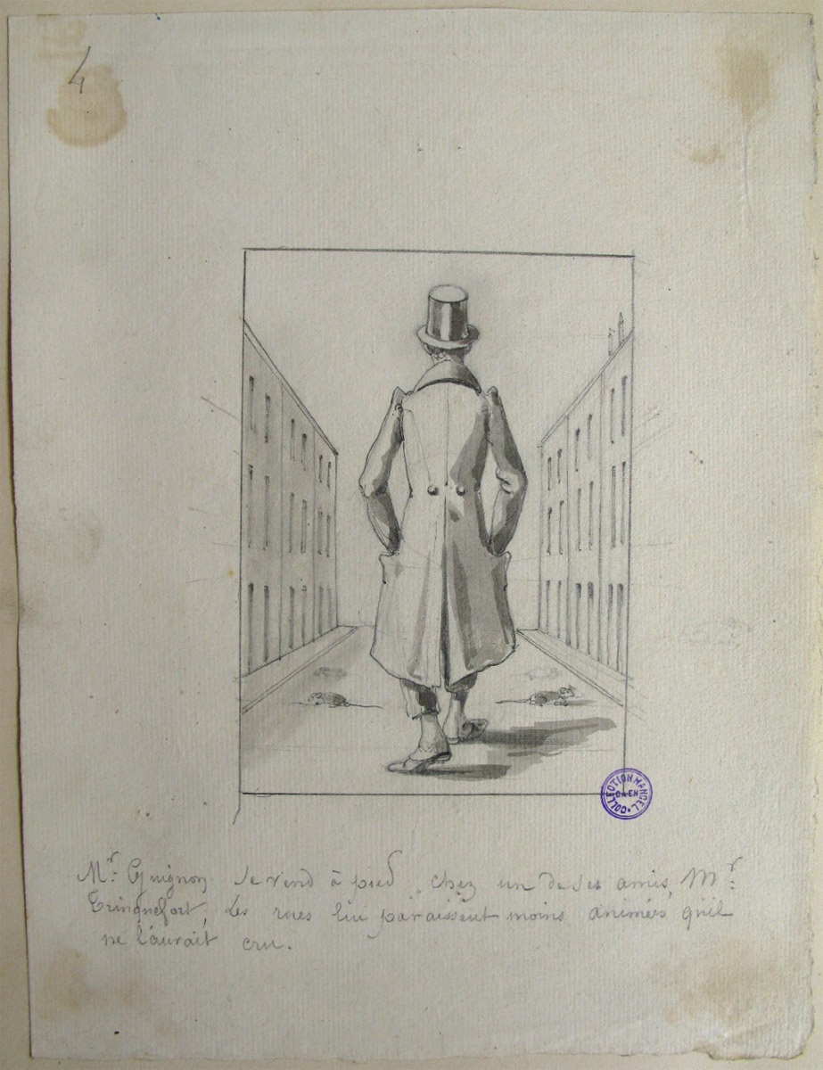 4. M. Guignon se rend à pied chez un de ses amis, M. Trinquefort ; M. Guignon, ou le voyage d'un habitant de Ruffec de Paris (titre factice de la série)