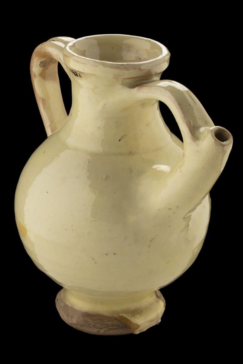 Dourquetto en terre cuite vernissée blanc cassé avec deux anses et bec verseur