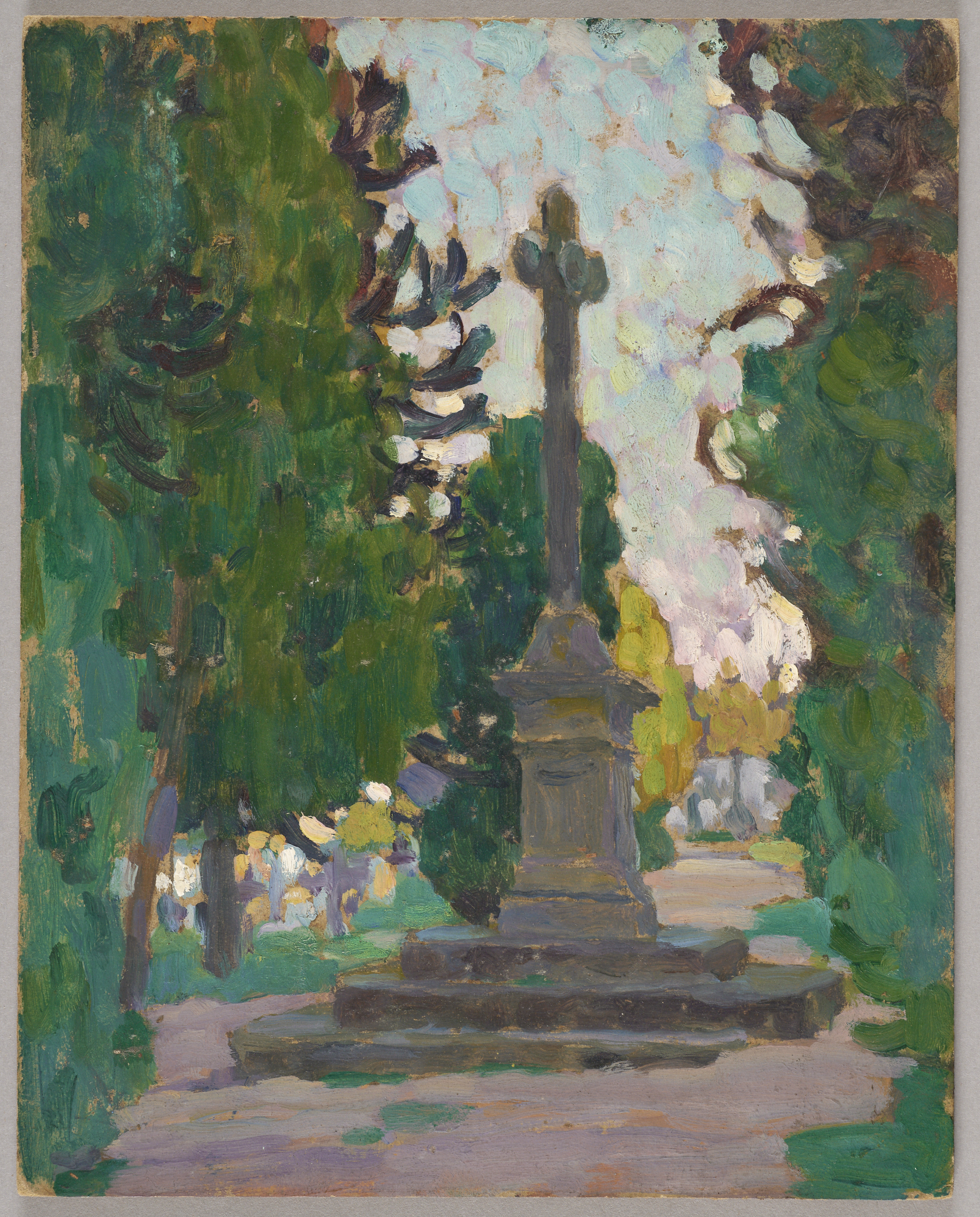 Calvaire est une pièce de beaux-arts, peinture réalisée par Barbey Jeanne-Marie (1876-1960), au musée des beaux-arts. Barbey Jeanne-Marie (1876-1960) a utilisé ici huile, carton. Dimensions : H.23.7 cm, l. 18.8 cm. Sujet représenté : Paysage,calvaire,croix,arbre. Cette pièce remonte à la 1ère moitié 20e siècle. Détail à relever : Paris, 17/07/1876 ; Bagnolet, 12/08/1960.
