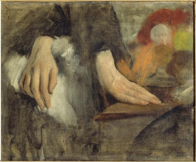 Etude de mains est une oeuvre de Degas Edgar (1834-1917), conservée au musée d'Orsay. L'oeuvre a été exécutée en peinture à l'huile, toile. Mesures : 38 H ; 46 L. Le thème de l'oeuvre est : main (femme, Bellelli Laure, Gas Laure de, expression du corps). La création de cette oeuvre remonte à la 3e quart 19e siècle. Détail à relever : Paris, 1834 ; Paris, 1917.