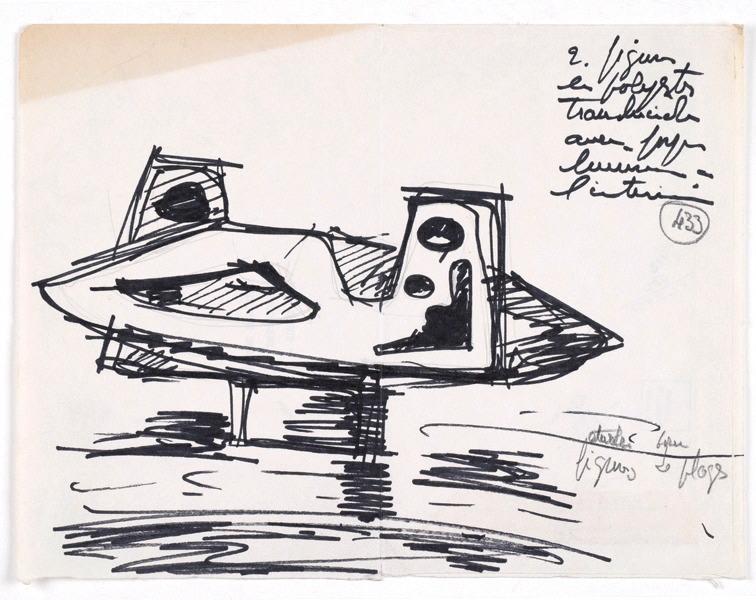 Etude pour figures de plages (Titre inscrit sur le dessin) ; 2. figures en polyester translucides avec foyer lumineux à l'intérieur (Titre inscrit sur le dessin)