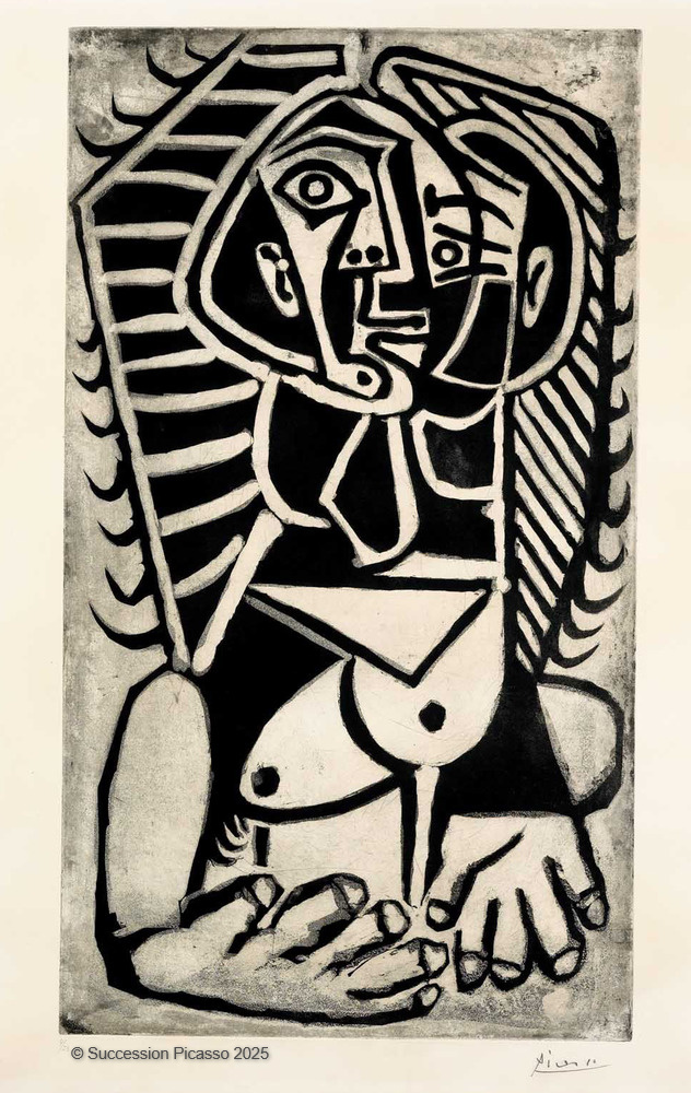 Das Werk mit dem Titel « "L'Égyptienne" », zugeschrieben Picasso Pablo (1881-1973), wird im musée Picasso aufbewahrt. Dieses Stück ist in der Joconde-Datenbank des Kulturministeriums verzeichnet, die die Werke der französischen Museen erfasst.