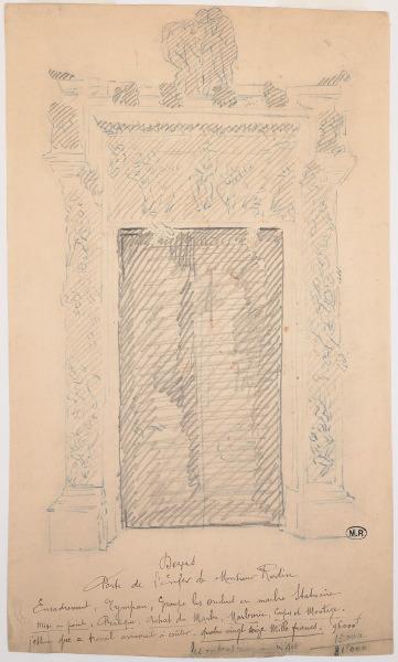 Devis Porte de l'Enfer de Monsieur Rodin. Papier collé sur carton. Ce dessin n'est pas de la main de Rodin.