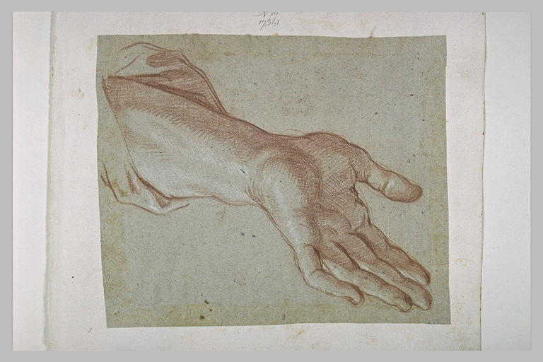 Calandrucci Giacinto (1646-1707) a réalisé Main ouverte, actuellement au musée du Louvre. Le procédé technique employé est sanguine, blanc (rehaut), papier (gris-vert). Mesures : H. en m 0,250 ; L. en m 0,304. Sujet représenté : main (expression du corps, ouvert). Cette réalisation date de la 2e moitié 17e siècle;1er quart 18e siècle. Note sur cette oeuvre : né en 1646 ; mort en 1707.