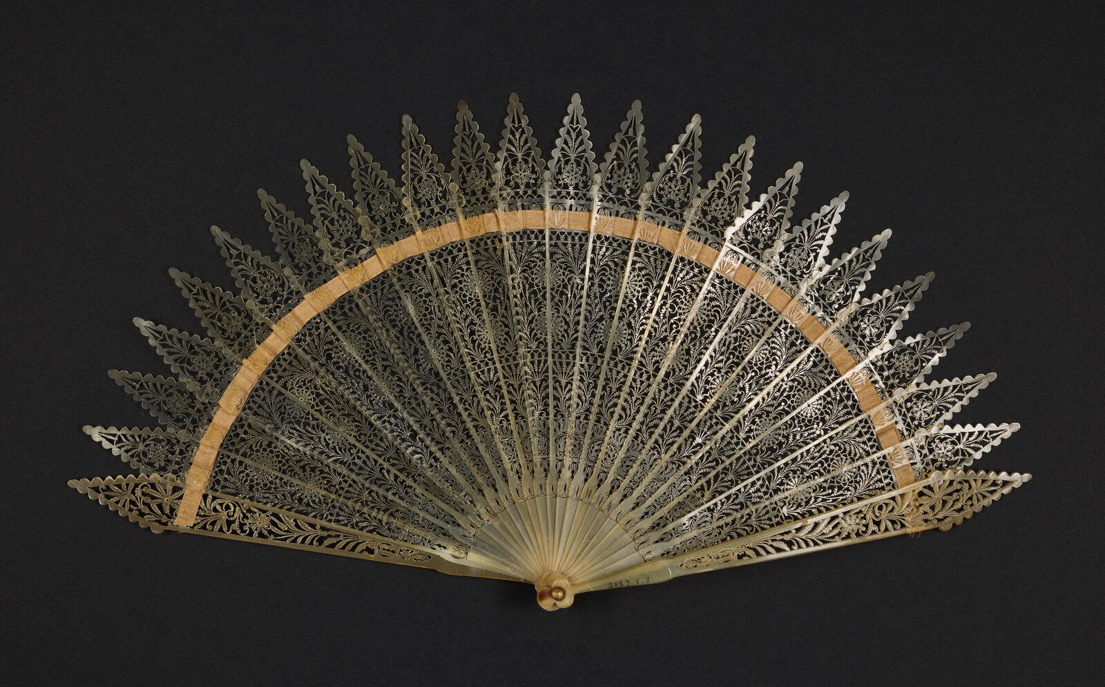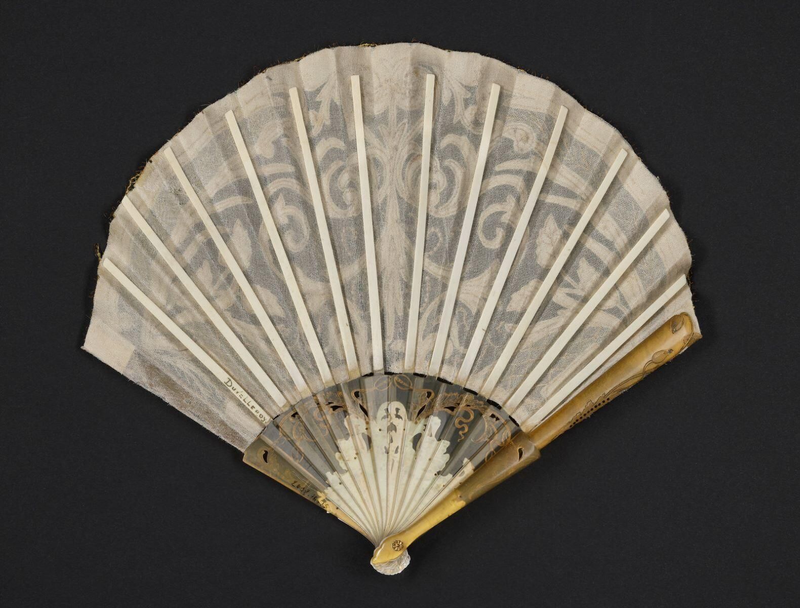 According to the records in the Joconde database, works by Duvelleroy employ the following techniques and materials: Corne blonde, carton, nacre blanche, carton, corne blonde, carton. Each work record details the technique in the 'Materials / Techniques' field.