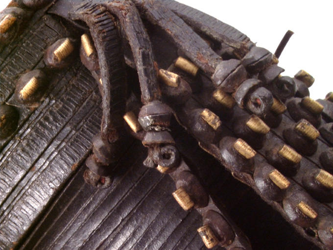 This work belongs to the field: costume - accessoires du costume, Asie méridionale, ethnologie. It was created using the following materials and techniques: cuir, cabochon. Its period of creation is identified as: 2nd quarter 19th Century;3rd quarter 19th Century.