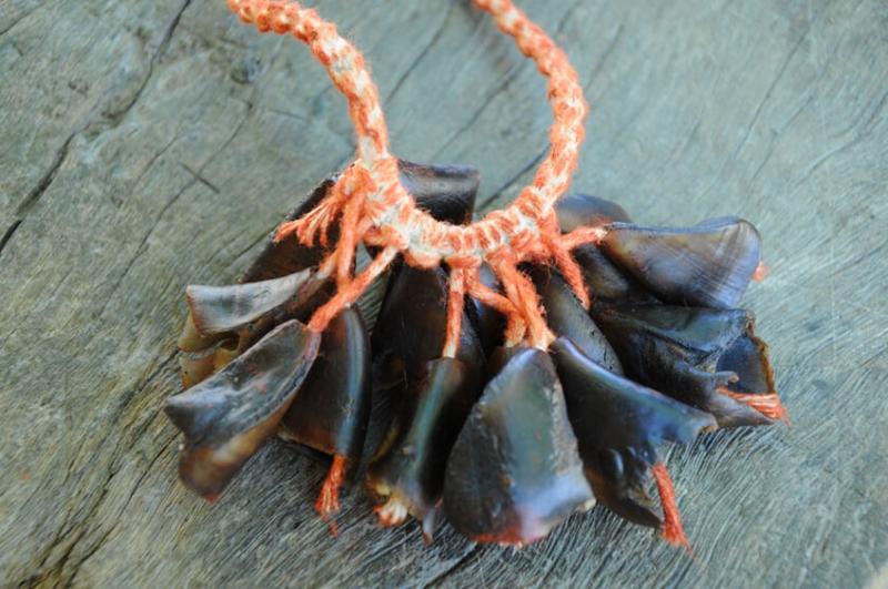 This work belongs to the field: ethnologie, Amérique du sud, costume - accessoires du costume, musique - chant - danse. It was created using the following materials and techniques: coton, rocou, ongle. Its period of creation is identified as: 1st quarter 21st Century.