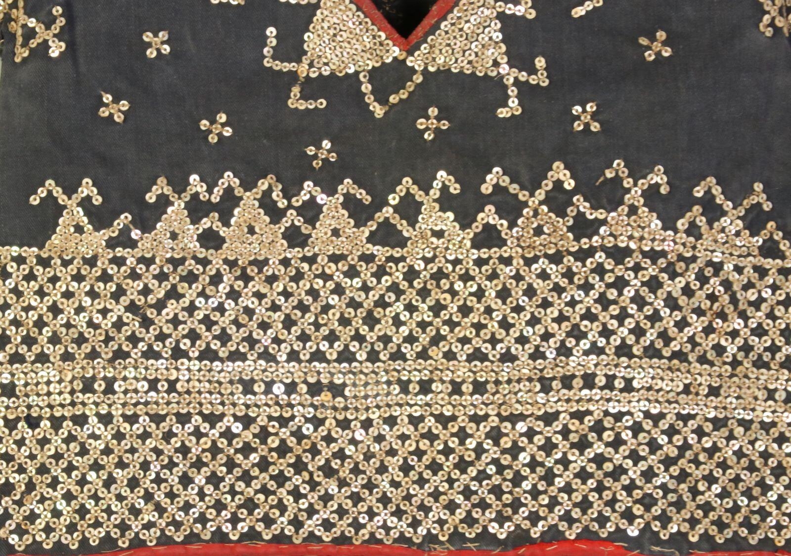 This work belongs to the field: ethnologie, Asie du sud-est, costume - accessoires du costume, textile. It was created using the following materials and techniques: coton (tissage), indigo (teinture), nacre (application). Its period of creation is identified as: 1ère moitié 20th Century.