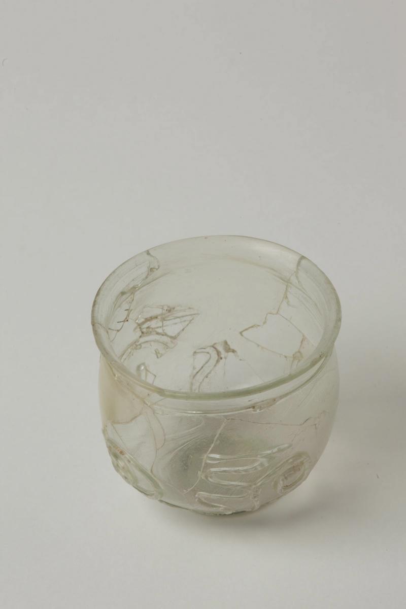 This work belongs to the field: archéologie, gallo-romain, croyances - coutumes, vie domestique, verrerie. It was created using the following materials and techniques: verre (soufflé). Its period of creation is identified as: 4th quarter 3rd Century.