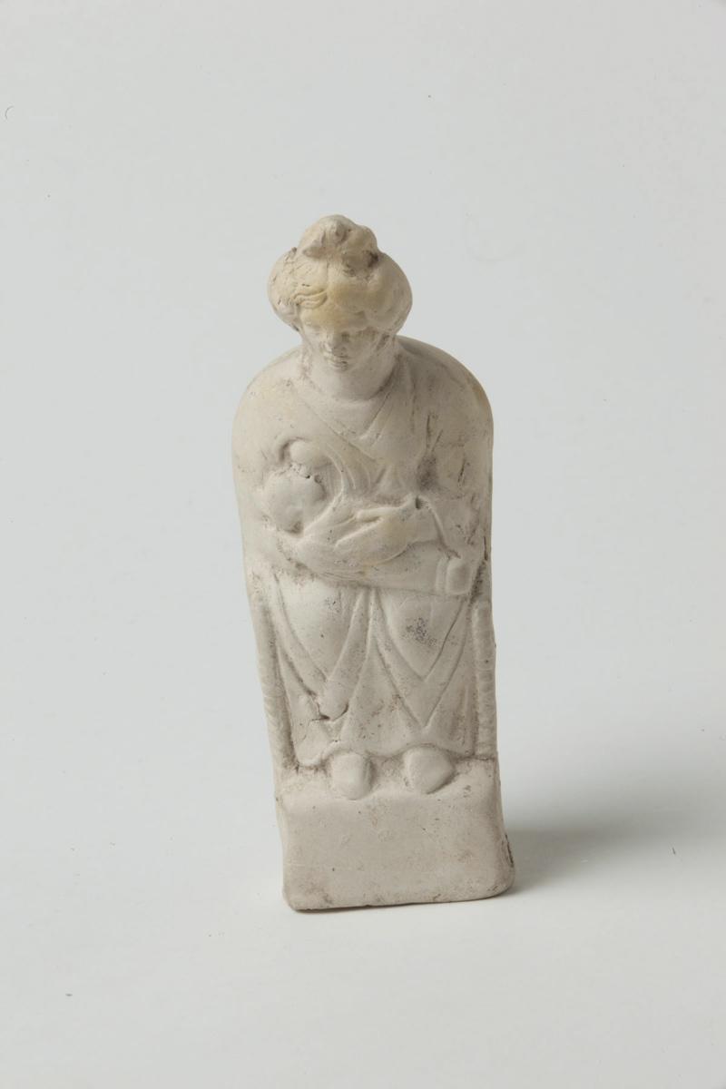 This work belongs to the field: archéologie, gallo-romain, croyances - coutumes, céramique. It was created using the following materials and techniques: terre, blanche (moulé, cuisson). Its period of creation is identified as: 1er siècle;2nd Century;3rd Century.