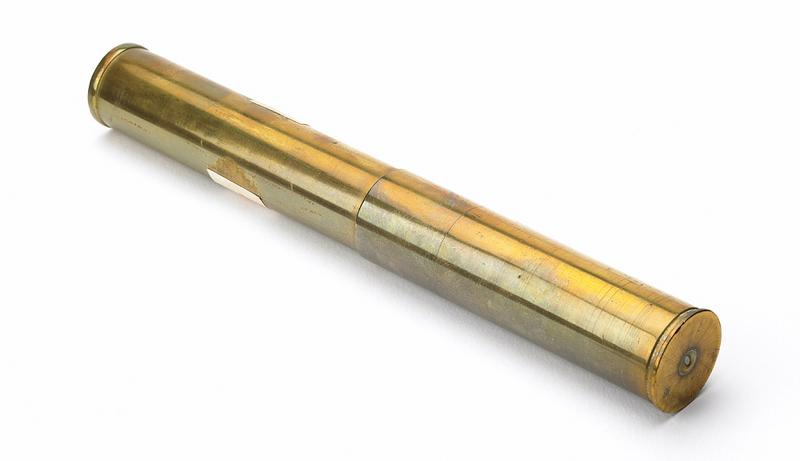 La technique employée est : laiton. Elle mesure L. 20.7 cm ; D. 2.9 cm ; VOLUM. 0,0001. Cette réalisation date de la 1er quart 20e siècle.