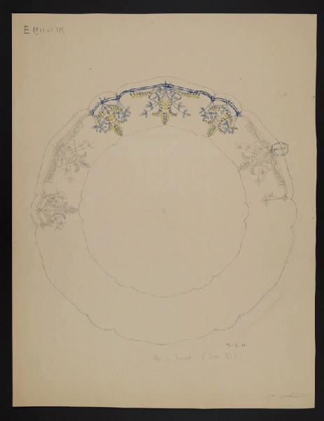 Bethmont Eugénie (1873-1949);Manufacture nationale de Sèvres a réalisé Assiette, actuellement au musée national de la céramique. L'oeuvre a été exécutée en aquarelle, graphite, papier. Elle mesure Hauteur 40.5 ; Largeur 31. Cette réalisation date de la 1er quart 20e siècle. On sait de cette oeuvre que : Bethmont, née Vuillaume : auteur de décor à la Manufacture de Sèvres de 1896 à 1907 ; manufacture de Sèvres : fondée en 1756.