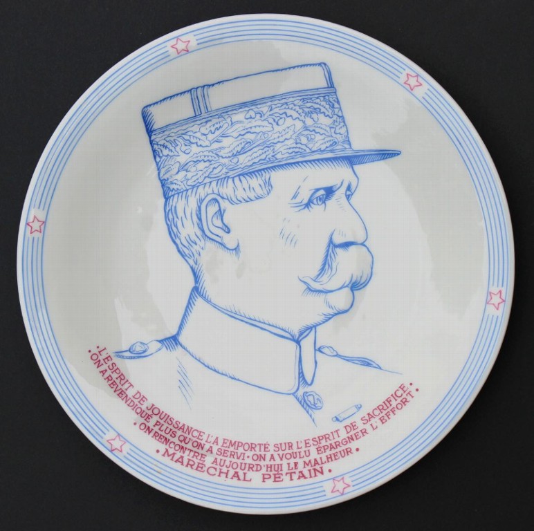 Assiette Maréchal Pétain est le produit de la rencontre entre le talent de GUILLAUME François (décorateur) et les aspirations de la 2e quart 20e siècle;1ère moitié 20e siècle. Abritée au musée du château Charles VII, cette œuvre cristallise les questionnements artistiques propres à une époque qui voit naître de nouvelles formes d'expression et de nouveaux rapports à la création.