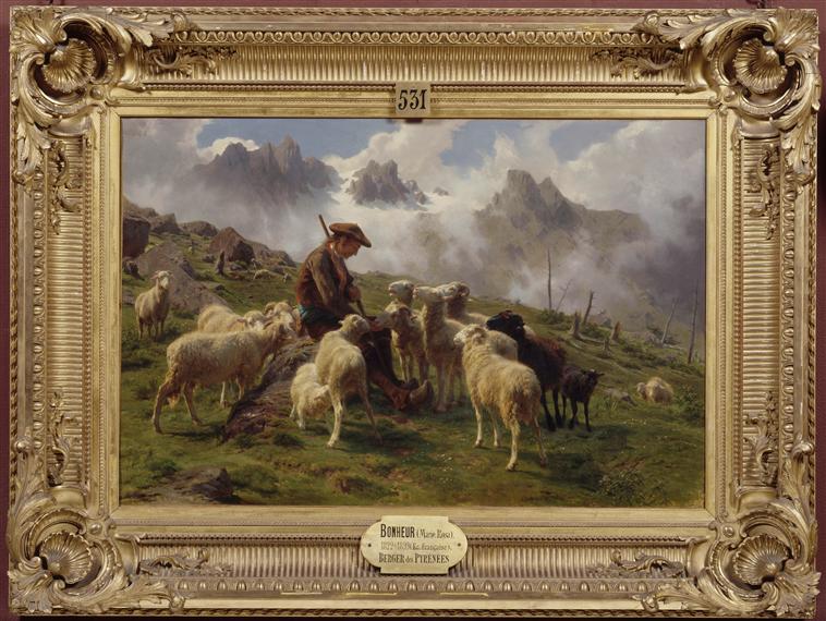 Berger des Pyrénées de Bonheur Rosa (1822-1899) figure dans les collections du musée Condé. Le procédé technique employé est peinture à l'huile, toile. L'oeuvre présente les dimensions suivantes : 68 H ; 100 L. Le thème de l'oeuvre est : scène (garde : mouton, montagne, Pyrénées). L'oeuvre date de la 3e quart 19e siècle. Précisions sur cette oeuvre : Bonheur Marie Rosalie dite Rosa Bonheur ; Bordeaux, 1822 ; By (77), 1899.