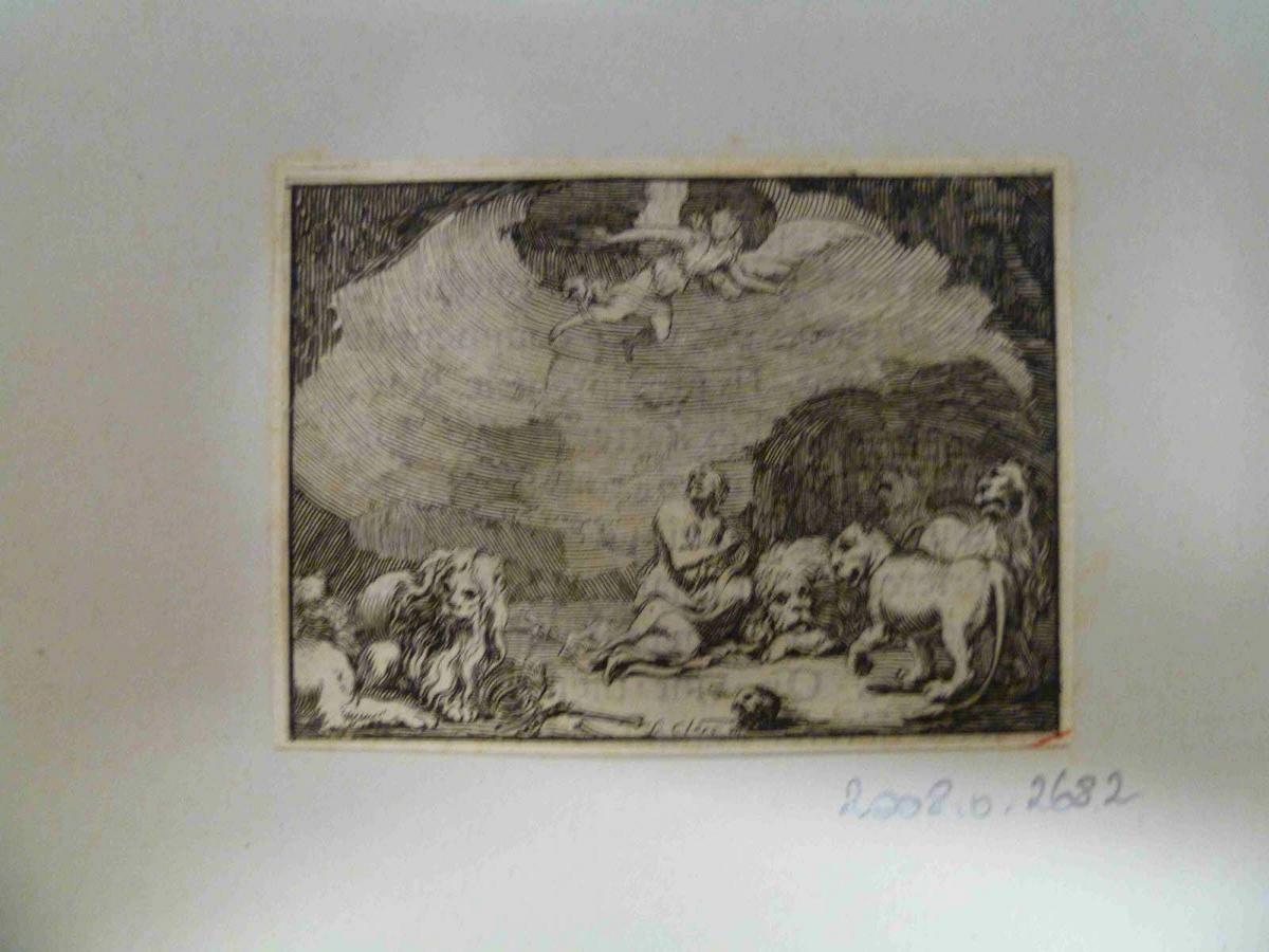 L'oeuvre Daniel dans la fosse aux lions, avec un ange apparaissant au dessus de lui de Leclerc Sébastien (1676-1763) (graveur);Sercy Charles de (1623-1700) (éditeur);Fine de Brianville Claude-Oronce (1608-1674) (écrivain) fait partie des collections du musée des beaux-arts. La technique employée est : eau-forte, papier. La pièce a pour dimensions Hauteur x Largeur : 5,5x7,5 cm. Elle est datée de la 3e quart 17e siècle. Concernant cette pièce : Leclerc ou Le Clerc Sébastien II, fils ou Le Jeune : né en 1676 ; mort en 1763.