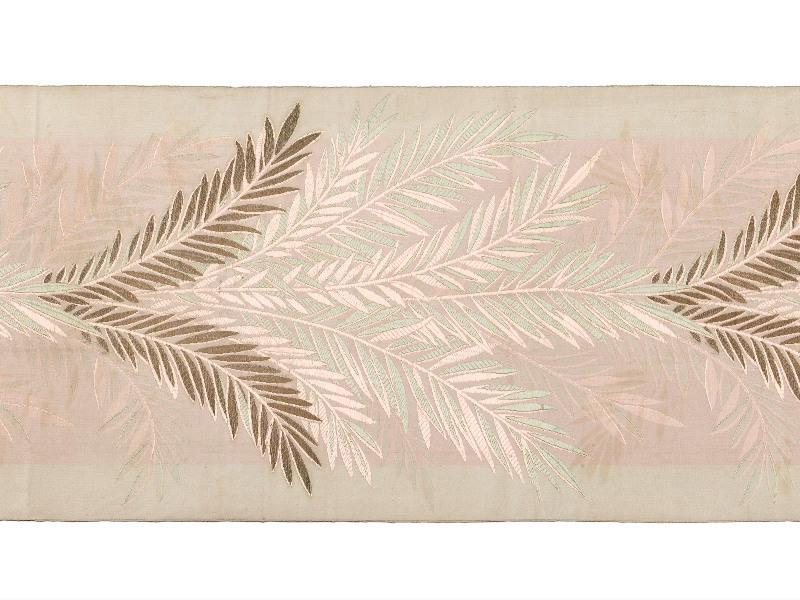 De anonyme, feuillage est conservée au musée d'art et industrie dans le domaine textile. Cette pièce est en soie, or, satin à aspect damassé, broché. Format : hauteur en cm 231 ; largeur en cm 27.3. Le motif représenté : représentation végétale (feuille, palme). Elle a été créée durant la 2e moitié 19e siècle;1er quart 20e siècle.