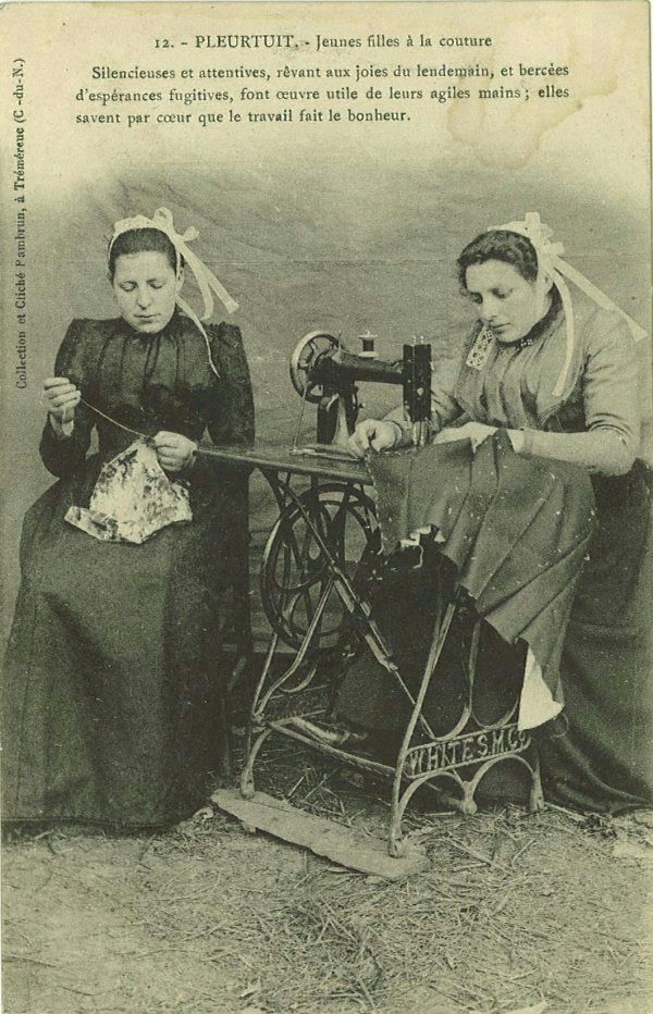 L'oeuvre Jeunes filles à la couture - Silencieuses et attentives rêvant aux joies du lendemain et bercées d'espérances fugitives font oeuvre utile de leurs agiles mains - elles savent par coeur que le travail fait le bonheur. de Pambrun (éditeur) fait partie des collections du musée de la carte postale. La réalisation fait appel à papier, procédé photomécanique, noir et blanc. La pièce a pour dimensions 14 X 9. Sa période de création est la 1er quart 20e siècle. On sait de cette oeuvre que : Tréméreuc.