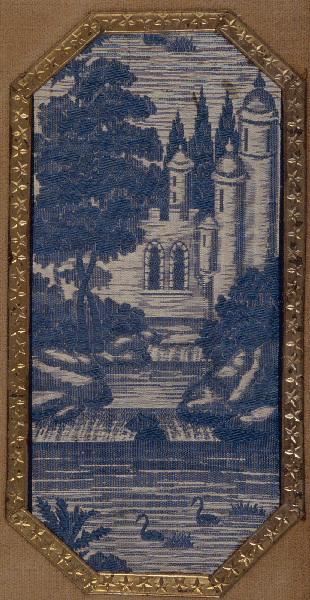 L'oeuvre paysage de anonyme fait partie des collections du musée d'art et industrie. Il s'agit d'une oeuvre en soie, métal, tissé. Dimensions : hauteur en cm 14.4 ; largeur en cm 7.5 ; hauteur hors tout en cm 86 ; largeur hors tout en cm 69.5 ; épaisseur hors tout en cm 5. L'oeuvre représente : paysage (manoir, cygne, étang, rivière, cascade, arbre). Cette pièce remonte à la 19e siècle.