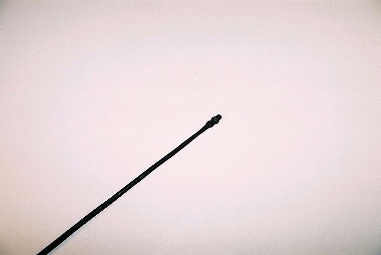 Sagaie à section transversale circulaire. Extrémité distale aplatie et de contour lancéolé. Cette partie est traversée dans le sens transversal de sillons gravés