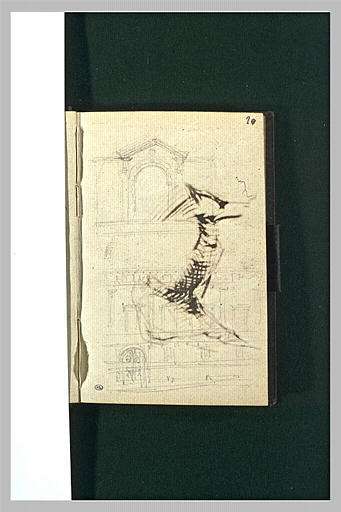 Album Belly Léon Adolphe -1-, folio 20, dessiné au recto ; Album cartonné en papier toilé marron. Traces de folios déchirés entre les folios 19 et 20, 29 et 30. H. 0,210 ; L. 0,148