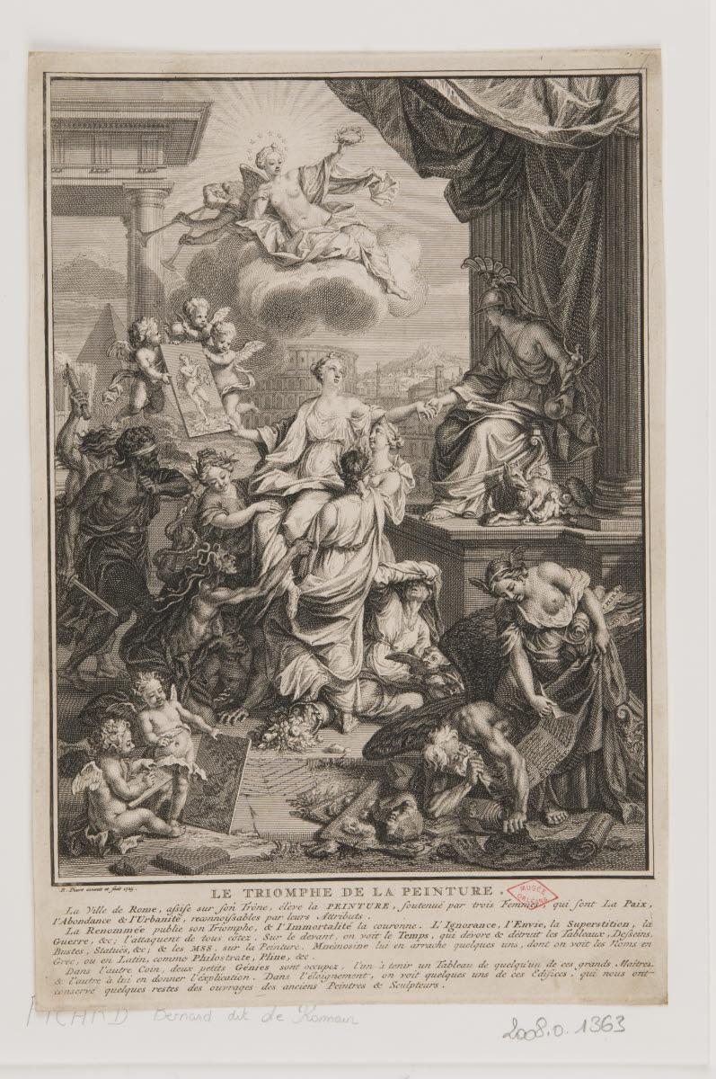 La obra titulada « Triomphe de la Peinture », atribuida a PICART Bernard (graveur, inventeur), se conserva en el musée des beaux-arts. Registrada en la base Joconde, esta obra participa del patrimonio artístico nacional conservado en los museos certificados.