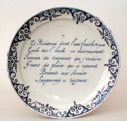 L'art de Centre Indetermine est marqué par le céramique, sculpture, vie domestique, arts décoratifs. La technique de Centre Indetermine repose sur faïence stannifère (décor de grand feu, camaïeu bleu). Il oeuvre dans le champ de céramique, sculpture, vie domestique, arts décoratifs.