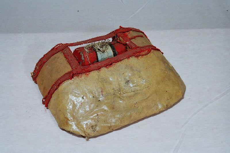 Le procédé technique employé est carton, tissu. Ses dimensions sont H. en cm 11 ; L. en cm 38 ; L. en cm 28.5. Cette réalisation date de la 19e siècle.