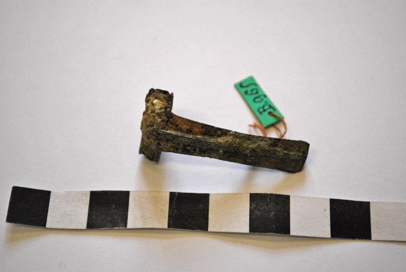 Cette oeuvre est réalisée en bronze, moulage, martelé, forgé. Dimensions de l'oeuvre : Longueur en cm 4.24 ; Largeur en cm 1.9. Elle est datée de la 1er siècle.