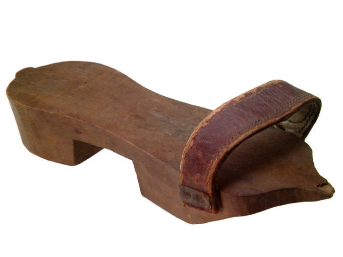 Quest'opera appartiene al settore: costume - accessoires du costume, Asie méridionale, ethnologie. È stata realizzata con i seguenti materiali e tecniche: bois, cuir. Il suo periodo di creazione è identificato come: XX secolo.