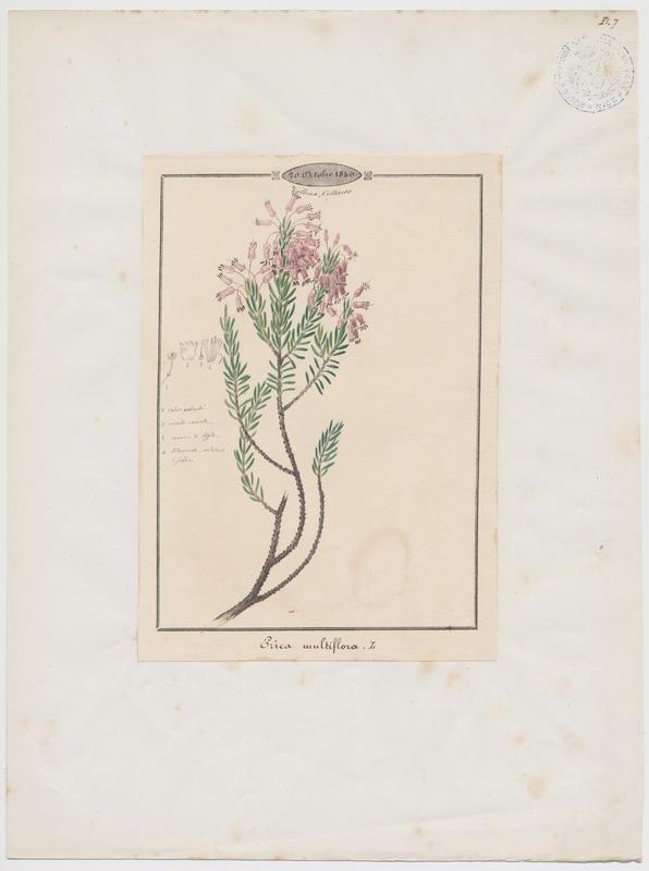 Bruyère à fleurs nombreuses ; plante à fleurs, oeuvre de sciences naturelles, dessin, botanique, est due à Barla Jean-Baptiste (1817-1896) (attribué à) et conservée au muséum d'histoire naturelle. Barla Jean-Baptiste (1817-1896) (attribué à) a utilisé ici papier, encre, aquarelle. Les dimensions de l'oeuvre sont : mesure en cm : H. 21,5 ; l. 15,5. L'oeuvre représente : représentation scientifique,représentation végétale (bruyère). L'oeuvre appartient à la 2e quart 19e siècle. Détail à relever : Nice, 1817 ; Nice, 1896.