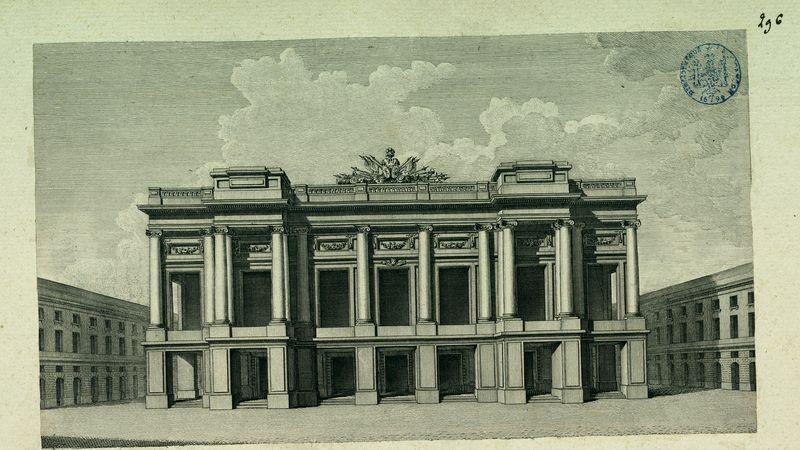 anonyme conçoit Façade d'un théâtre projeté dans un environnement artistique façonné par la 18e siècle. Cette pièce, conservée au Bibliothèque municipale de Besançon, porte l'empreinte des débats esthétiques et des innovations techniques qui animent alors la scène culturelle. Comprendre ce contexte permet d'apprécier pleinement la portée de l'œuvre.