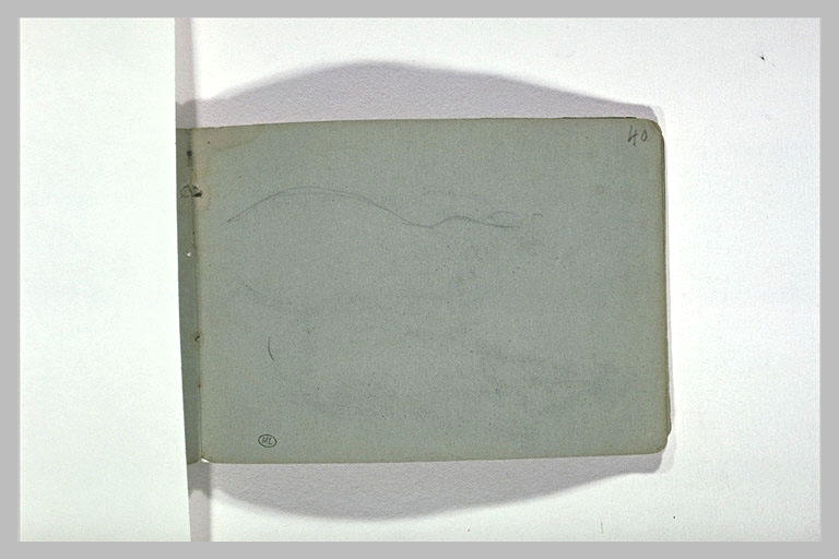 Album Andrieu Pierre -3-, folio 40, dessiné au recto ; Carnet cartonné en papier vert, anciennement classé à Delacroix, portant le cachet E. D. sur plusieurs folios. Etudes de faunes, portraits et paysages. Trace d'un folio manquant entre les folios 29 et 30 et les folios 35 et 36. Le folio 33 manque. Les folios 35 et 41 sont vierges. H. 0,102 ; L. 0,145