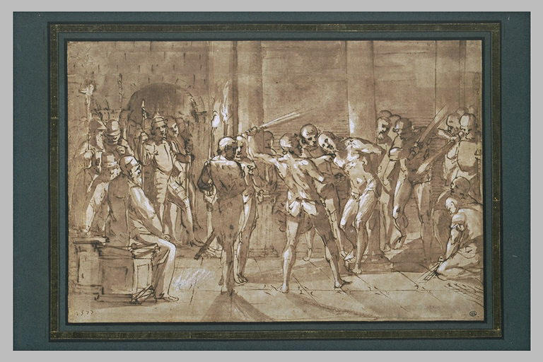 Quest'opera appartiene al settore: dessin. È stata realizzata con i seguenti materiali e tecniche: plume, blanc (rehaut), encre brune, lavis brun, papier (beige). Il suo periodo di creazione è identificato come: 2a metà XVI secolo.