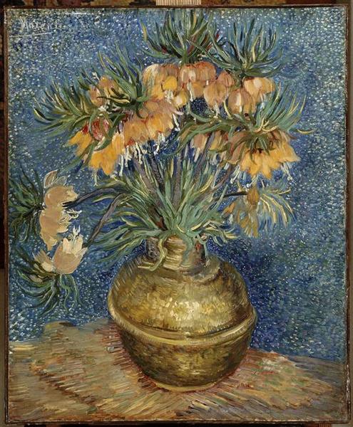 L'opera intitolata « Fritillaires couronne impériale dans un vase de cuivre », attribuita a VAN GOGH Vincent, è conservata al musée d'Orsay. Registrata nella base Joconde, quest'opera partecipa al patrimonio artistico nazionale conservato nei musei certificati.