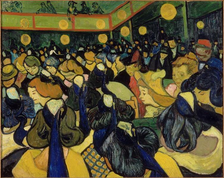 Le musée d'Orsay conserve La salle de danse à Arles, oeuvre de VAN GOGH Vincent. Cette oeuvre est réalisée en peinture à l'huile, toile. Ses dimensions sont 65 H ; 81 L. Elle figure : scène (bal, Arles, femme, coiffe, danseur, vêtement, homme). Sa période de création est la 4e quart 19e siècle. Complément d'information : Groot-Zundert (Brabant), 1853 ; Auvers-sur-Oise, 1890.