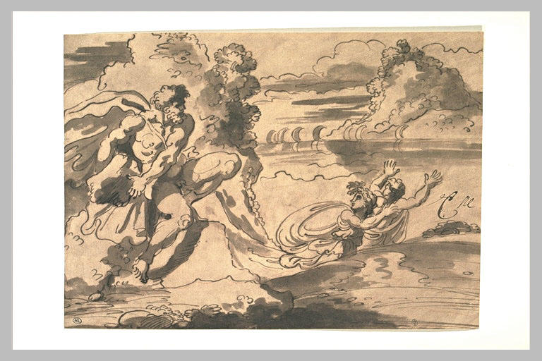 Quest'opera appartiene al settore: dessin. È stata realizzata con i seguenti materiali e tecniche: plume, encre brune, lavis brun, sanguine, papier (beige). Il suo periodo di creazione è identificato come: 2a metà XVII secolo;1o quarto XVIII secolo.