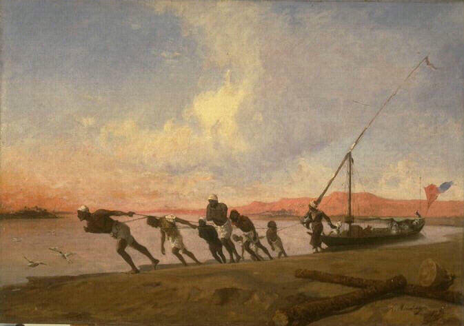 scène (halage, barque, Nil, Egypte)