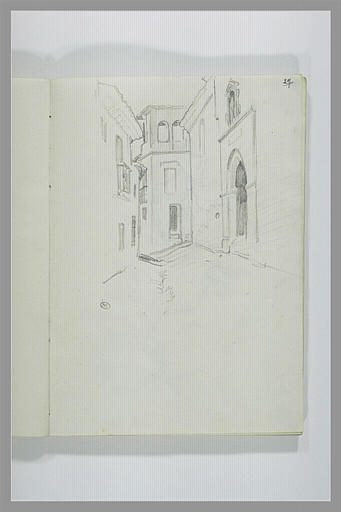 Album Dehodencq Alfred, folio 27, dessiné au recto ; Album cartonné gris à dos de toile grise comprenant 88 feuillets, dont les folios 8, 35 à 66, et 84 à 86 sont vierges. Traces de folios arrachés entre les folios 28 et 29, 32 et 33, 64 et 65, 67 et 68, 68 et 69. Album commencé dans les deux sens : il est numéroté de 1 à 34 dans un sens et, de 1a à 19a dans l'autre sens (numérotation ancienne). Croquis faits en Espagne. H : 0,210 ; L : 0,150