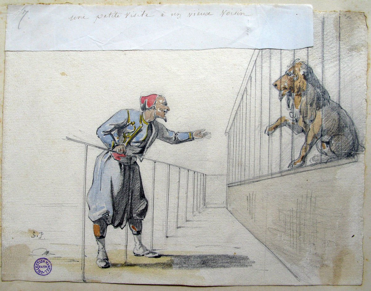 7. Une petite visite à un vieux voisin ; Un zouave à Paris (titre factice de la série) est le produit de la rencontre entre le talent de Le Pippre Septime (1833-1871) et les aspirations de la 19e siècle. Abritée au musée des beaux-arts, cette œuvre cristallise les questionnements artistiques propres à une époque qui voit naître de nouvelles formes d'expression et de nouveaux rapports à la création.