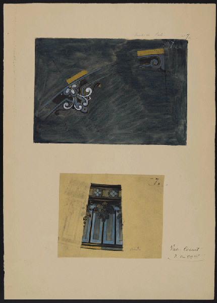 この作品は次の分野に属します:dessin, arts décoratifs。以下の素材と技法で制作されました:graphite, gouache, lavis, papier calque, papier, collé en plein。制作時期は 第4四半期 19 世紀 と特定されています。