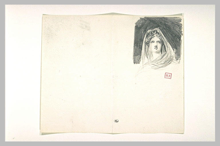 作品「Tête de femme, vue de face, un voile sur la tête」、COGNIET Léon に帰属する、musée du Louvre に所蔵されています。Joconde データベースに収録されたこの作品は、認定美術館が保存する国家芸術遺産の一部です。