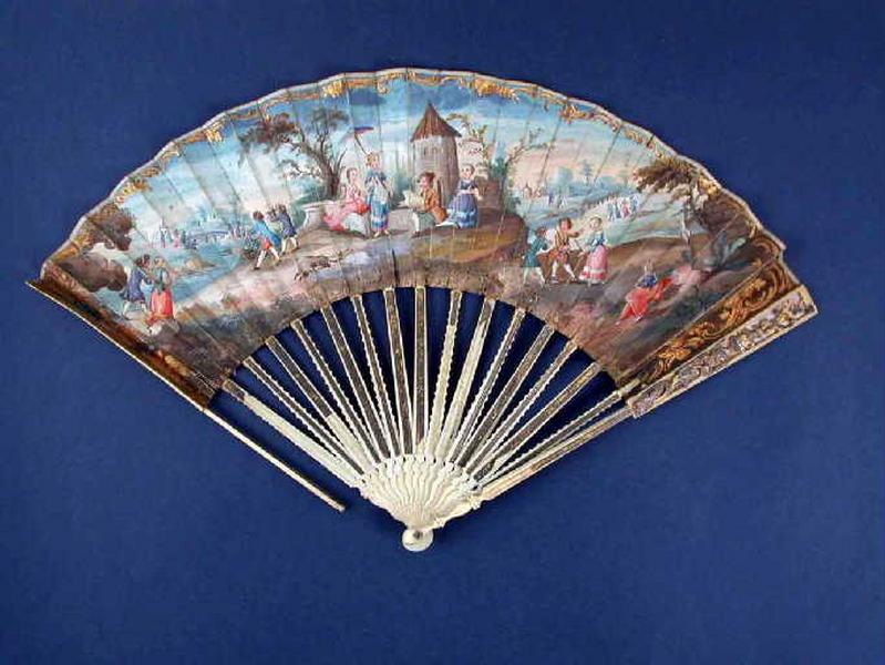 Cette œuvre relève du domaine : costume - accessoires du costume, arts décoratifs, tabletterie. Elle a été réalisée avec les matériaux et techniques suivants : pierre, papier, gouache, aquarelle, ivoire, nacre, gravé, doré. Sa période de création est identifiée comme : 4e quart 18e siècle.