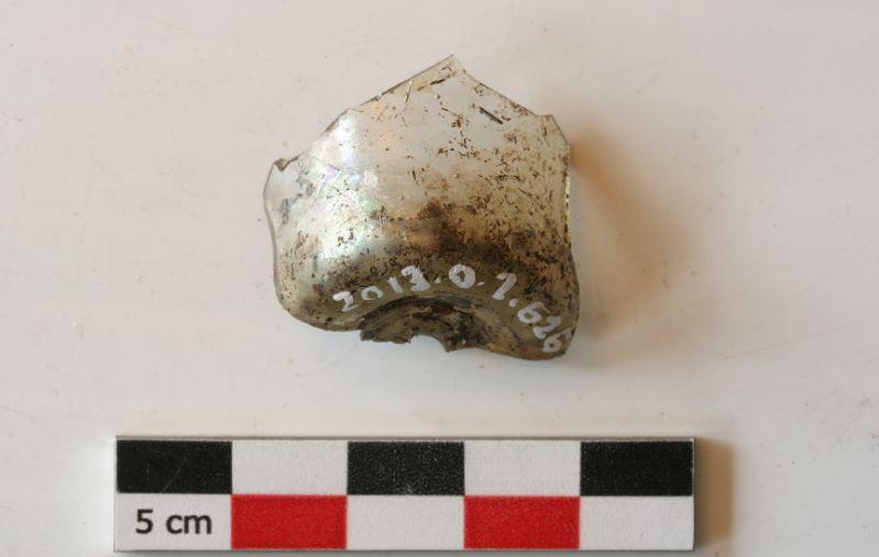 Incomplet. Seul subsiste un fragment de fond rentrant. Verre incolore, translucide.