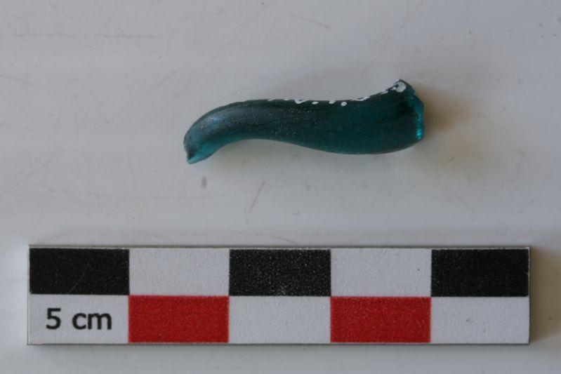 Incomplet. Seul subsiste un fragment de fil de verre. Verre bleu turquoise, translucide.